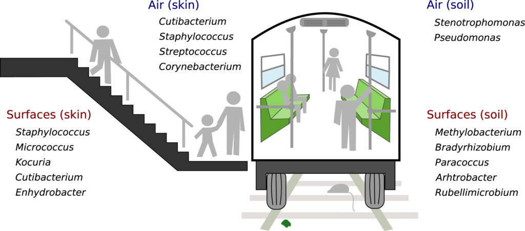 Some hitch a ride on the skin and clothing of commuters, while others are transported via airborne particles or contaminated surfaces. Once inside the subway environment, these microbial pioneers adapt to their new surroundings, forming resilient communities capable of surviving and thriving in the buried landscape. Moreover the composition of the subway microbiome is as diverse as the cities they inhabit, reflecting the unique environmental conditions and human activities that shape each metro system.